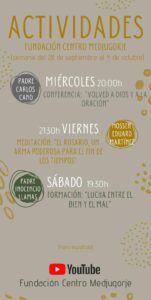 Las actividades se podrán seguir mediante el YOUTUBE de la Fundación Centro Medjugorje accediendo a los siguientes enlaces: