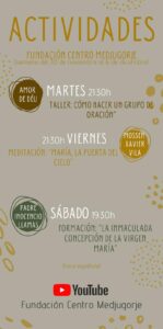 Las actividades se podrán seguir mediante el YOUTUBE de la Fundación Centro Medjugorje accediendo a los siguientes enlaces: