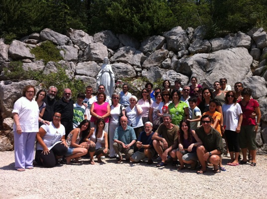 Comenzamos la peregrinación, rezando Laudes y el Santo Rosario, ora tiempo de oración, tiempo de ponernos en presencia del Señor. El día 9, llegamos a Croacia y en el autobús que nos llevaba a Bosnia-Herzegovina, rezamos el Santo Rosario y ya íbamos disfrutando porque sentíamos que nos acercábamos a la tierra de María, la Reina de la Paz, la que mejor nos puede conducir a su Hijo Jesucristo y, poco a poco, íbamos haciendo nuestro uno de los Mensajes que la Virgen nos transmite por medio de la vidente Mirjana: “No hay camino sin mi Hijo. No pienses que tendrás paz y alegría si no le pones en el primer lugar”. Cristo en primer lugar y la Eucaristía en el centro de nuestra vida interior; por eso nada más llegar a la Casa de Marisa (donde hemos sido acogidos y hospedados) en Medjugorje, dejamos las maletas y nos fuimos derechos al oratorio de la casa (¡precioso!). Se estaba bien y rezamos el Santo Rosario, Cena y adoración con exposición del Santísimo Sacramento en la explanada de la Iglesia de los franciscanos en el pueblito de Medjugorje. Miles de personas rezando en silencio, haciendo pequeñas oraciones en todos los idiomas
